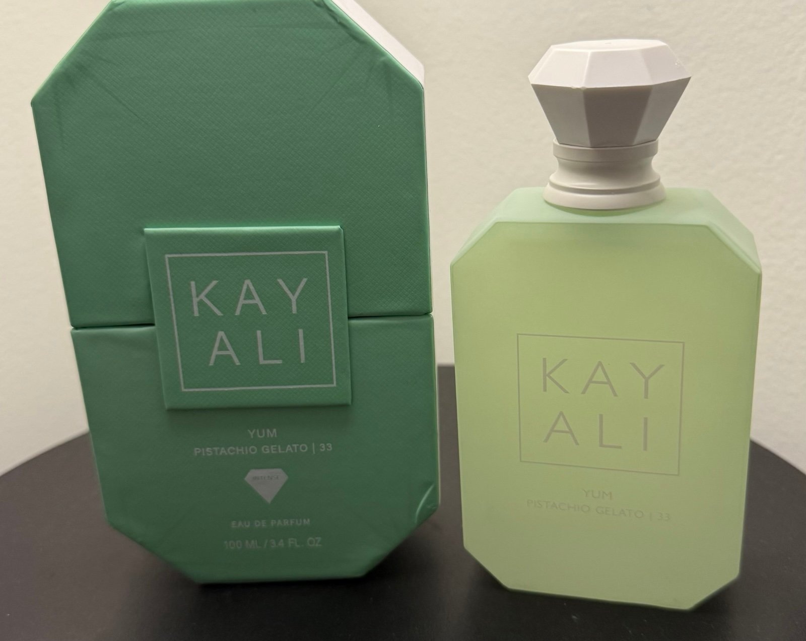 YUM PISTACHIO GELATO | 33 EDP INTENSE perfume is a delicious combination of rich, nutty pistachio and hazelnut, blended with rum that wraps you in warmth and sweetness, while delectable and fluffy whipped cream, marshmallow, and cotton candy intertwine to sugary indulgence.