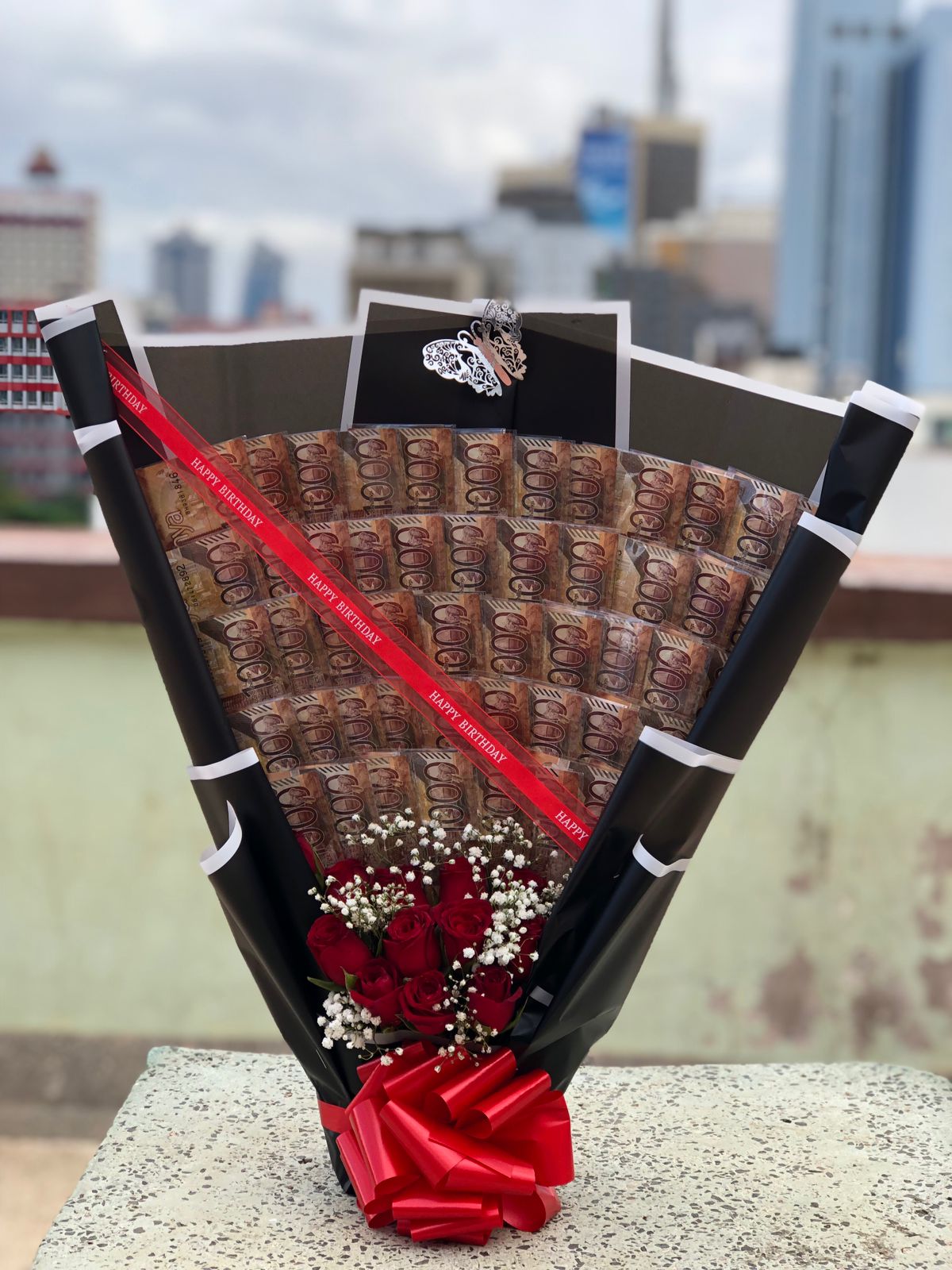 Make your gift unforgettable with this impressive hand-made money bouquet, paired with red roses and KSh 1,000 notes. A perfect gift for birthdays, anniversary, love surprise or any special occasion.