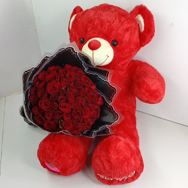 A truly beautiful & romantic flower combo consisting of a bouquet of red roses and 80cm red teddy bear.